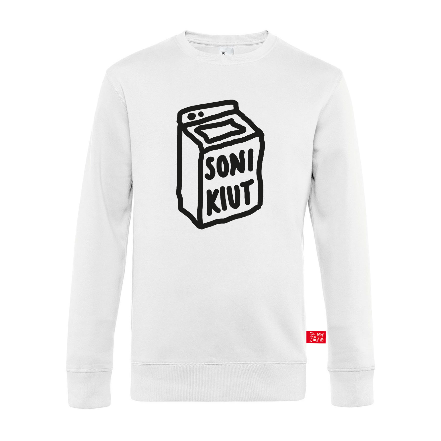 Etichetta “MAGLIETTE MOLTO BELLE” sul fianco sinistro.
